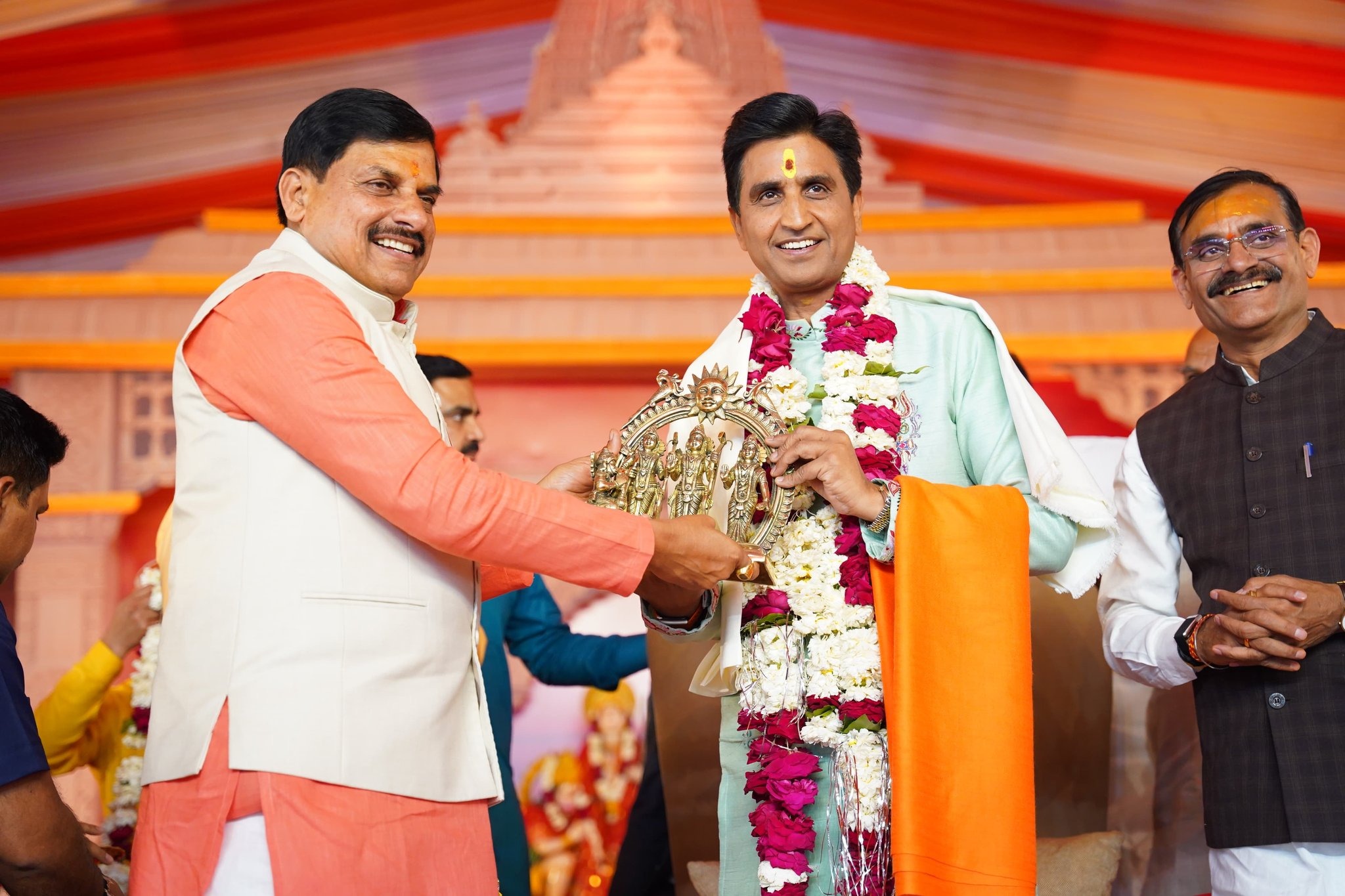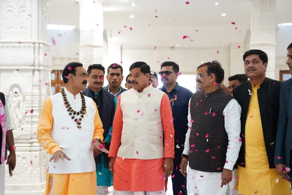 पूर्व गृहमंत्री डॉ. नरोत्तम मिश्रा ने मुख्यमंत्री का स्वागत किया। उनके मार्गदर्शन में मंदिर परिसर की व्यवस्थाओं और सुरक्षा के इंतजामों का जायजा लिया गया। मुख्यमंत्री ने उनके प्रयासों की सराहना करते हुए मंच से कहा, “आपने तो जंगल में मंगल कर दिया।” इस बात पर उपस्थित जनसमूह ने तालियों के साथ उत्साहपूर्वक स्वागत किया।